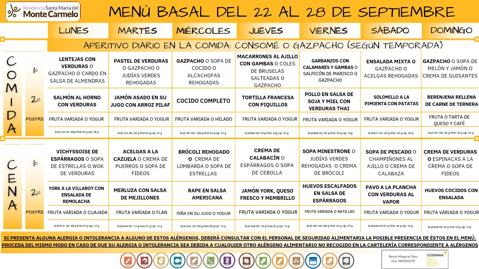 Menú del 22 al 28 de septiembre 2025.