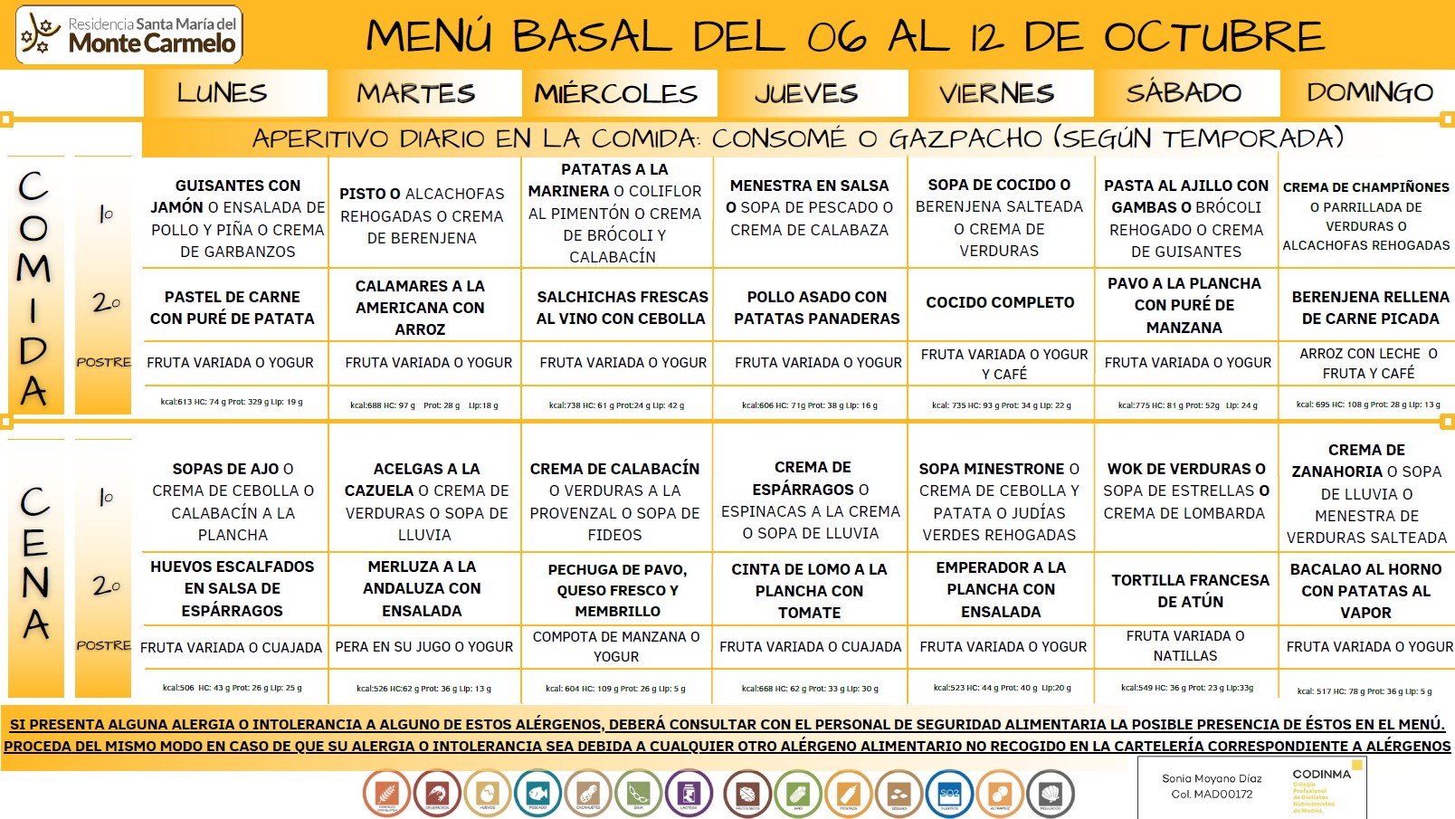 Menú del 06 al 12 de octubre 2025.