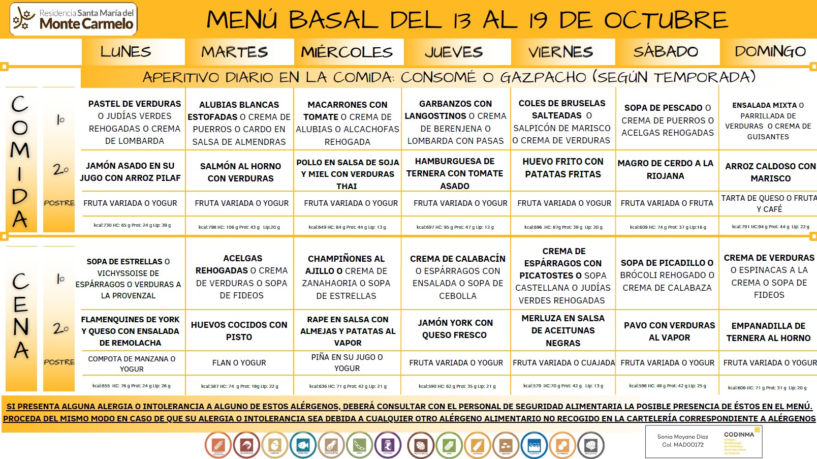 Menú del 13 al 19 de octubre 2025.